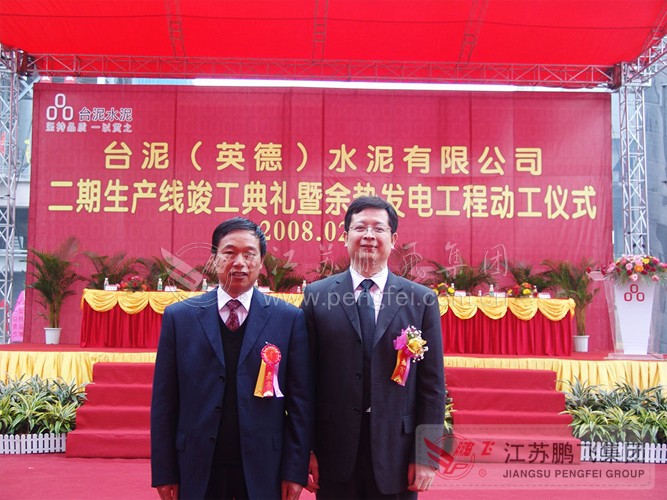 总裁王家安与中材国际南京水泥工业设计研究院院长夏之云在台泥(英德)二期工程点火典礼上